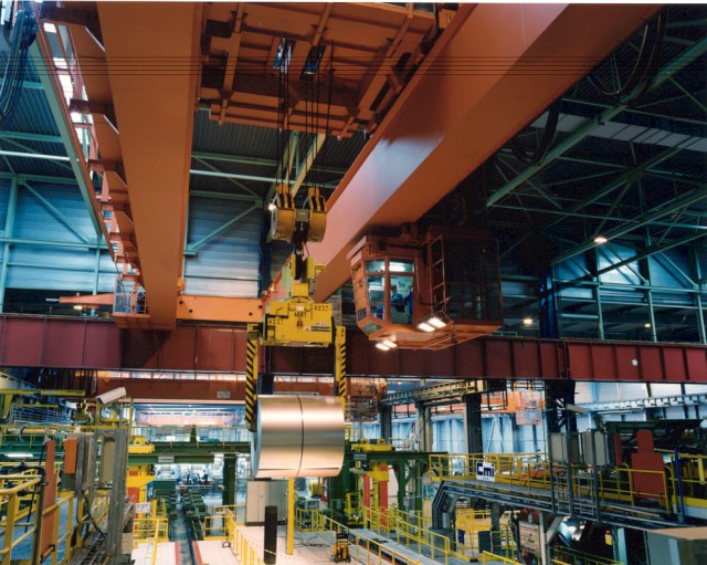 In allen Bereichen der Stahlproduktion sind die verschiedensten Ausprägungen von Kranen anzutreffen, angefangen vom einfachen Ladekran bis hin zum Gießkran im Stahlwerk mit Tragfähigkeiten bis ca. 600 t und Höchstanforderungen an Sicherheit und Zuverlässigkeit. Je nach Einsatzort und Transportaufgabe unterscheiden sich die Lastaufnahmemittel. Für die Stahlindustrie sind typisch: Zange (z. B. für Brammen, Knüppel), Haken (für Coils), Magnete sowie Greifer. Sehr viele Krane in der Stahlindustrie stammen bereits aus den 60er- und 70er-Jahren. Über ihre Lebensdauer haben diese Krane daher mehrere Modernisierungen erfahren.